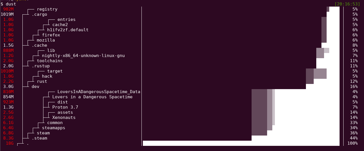 使用 Rust 開發的指令列工具,可用來找出目錄下佔據較多空間的檔案。