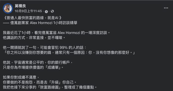💡 普通人最快致富的路線,就是AI(FB)
